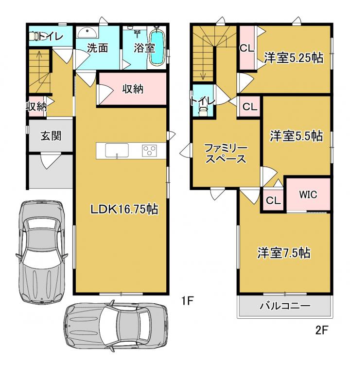 【 一戸建て 】新築 ◆駐車スペース2台分◆敷地約33坪◆WIC、パントリー付き◆全面道路約6m